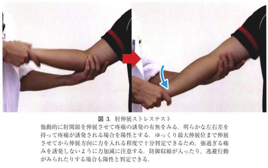 これは「肘伸展ストレステスト」と呼ばれ、後方障害のチェックに有効です。