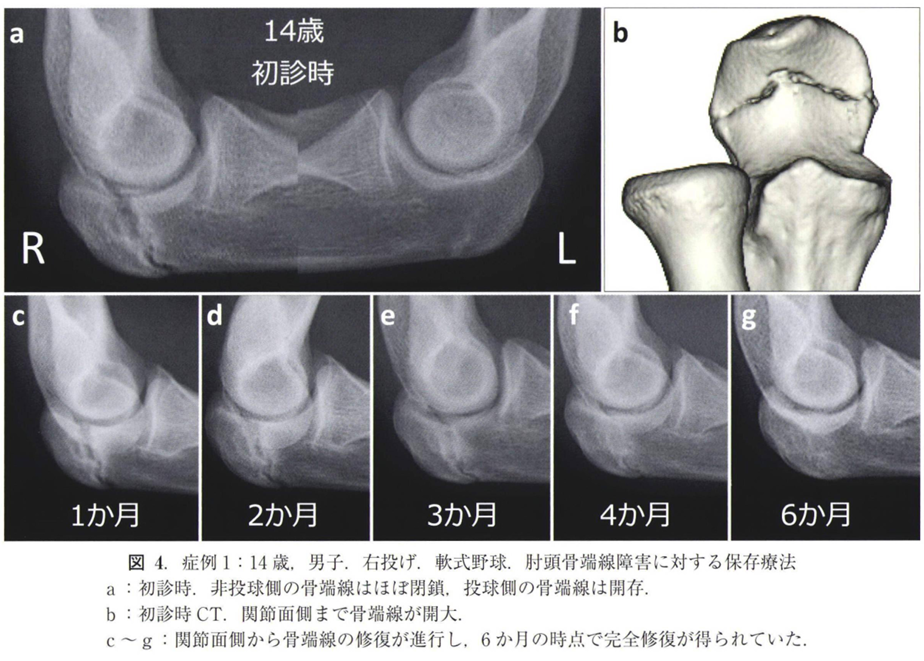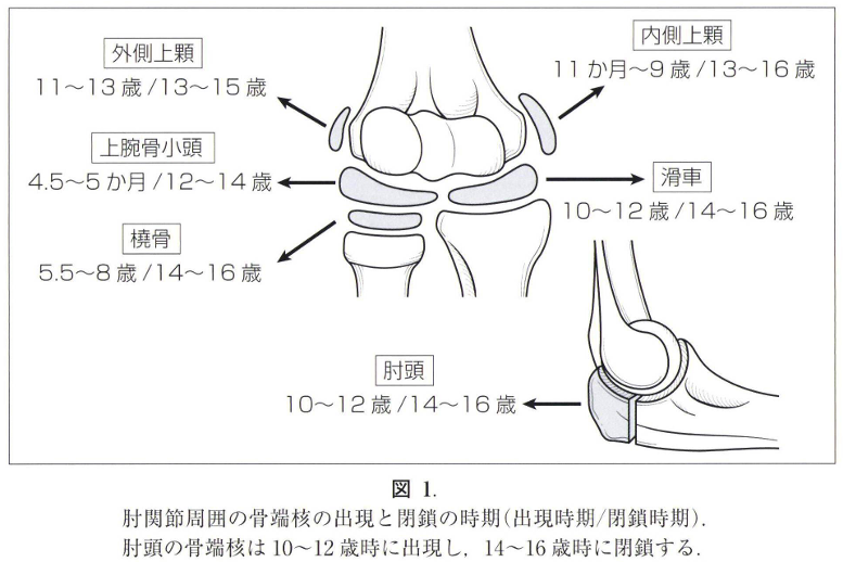 成長期の肘はまだ完成しておらず、「骨端線」という弱い部分があります。