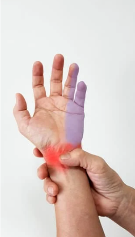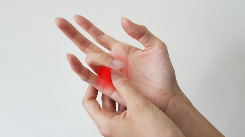 ものをつまむときや蓋を開けるときに親指の付け根が痛くなる病気です。加齢や手の使い過ぎによって、親指の関節の軟骨が痛むことで起きる病気です。親指のCM関節という関節が痛むことで生じるため、母指CM関節症と言います。