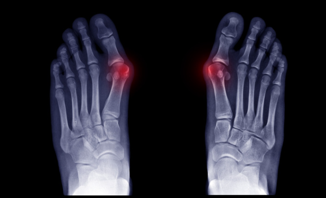 診断はある程度見た目でできます。診察では痛みの場所や魚の目の場所、偏平足がないかなどを確認します。またレントゲンを撮ることで外反母趾の重症度をチェックします。