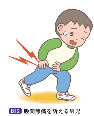 原因は活発で多動の小児に多いことによる外傷説が有力です。そのほかにも炎症や内分泌異常などの原因が挙げられています。3~12歳の男児に多く発症し、ピークは6~7歳です。多くは片側性ですが、両側性も15-20%にみられます。高齢発症は予後不良因子とされています。初発症状は股関節痛が多いですが大腿から膝関節の疼痛のみを訴えることがあります。疼痛は数日で軽快する程度と比較的軽症で、低年齢では跛行のみを示すことがあり、発見がおくれ手術が必要となるお子さんもいらっしゃいます。